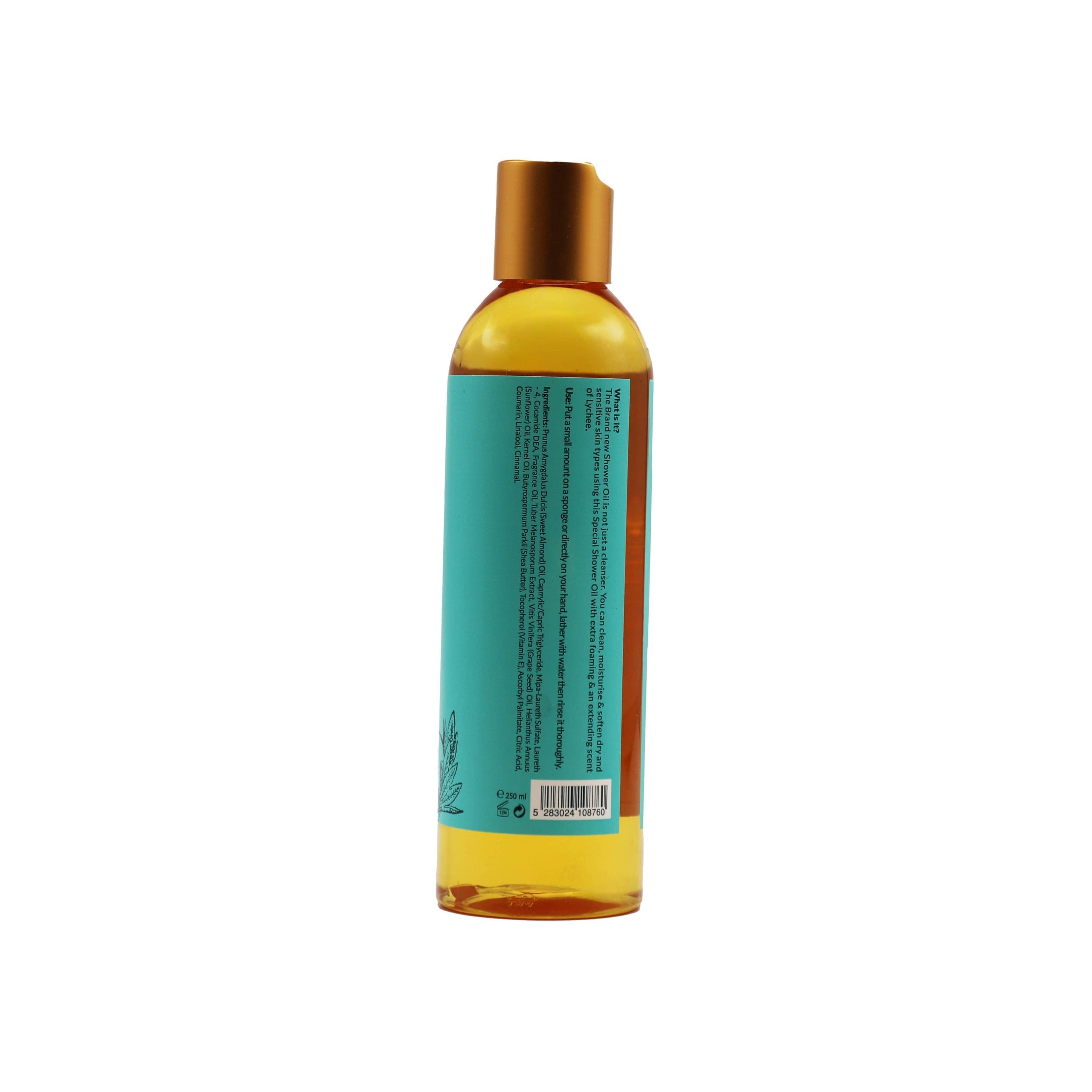 Begin with wet skin in the shower or bath. Dispense a small amount of shower oil into your hands or onto a shower puff. Massage the oil into your skin, focusing on dry and sensitive areas. Rinse thoroughly with warm water.