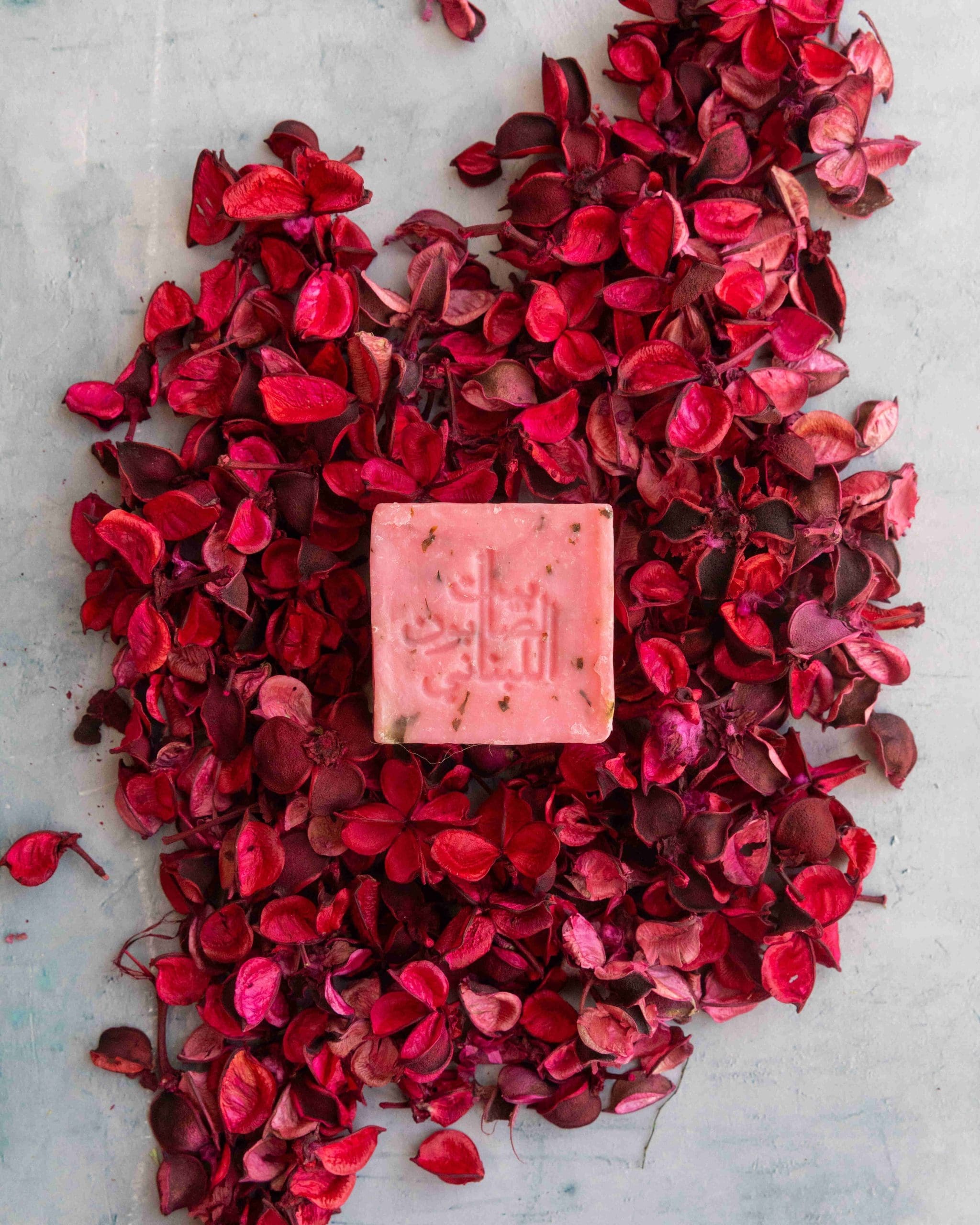Sodium Cocoate, Sodium Oleate, Prunus Amygdalus Dulcis (Sweet Almond Oil), Olive Oil, Aqua (Water), Vegetal Glycerin, Herbs Extracts (Rosemary extract and Green Tea extract), Rose Petals, Parfum, C.I.16035.